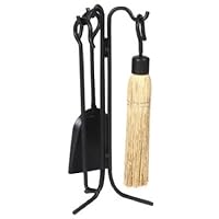 (More customer reviews)if your looking for a small tool set for your stove/ fireplace, this item is pretty good. the metal parts are simular quality to one which cost $80.00. the only draw back is the broom is round and stiff.